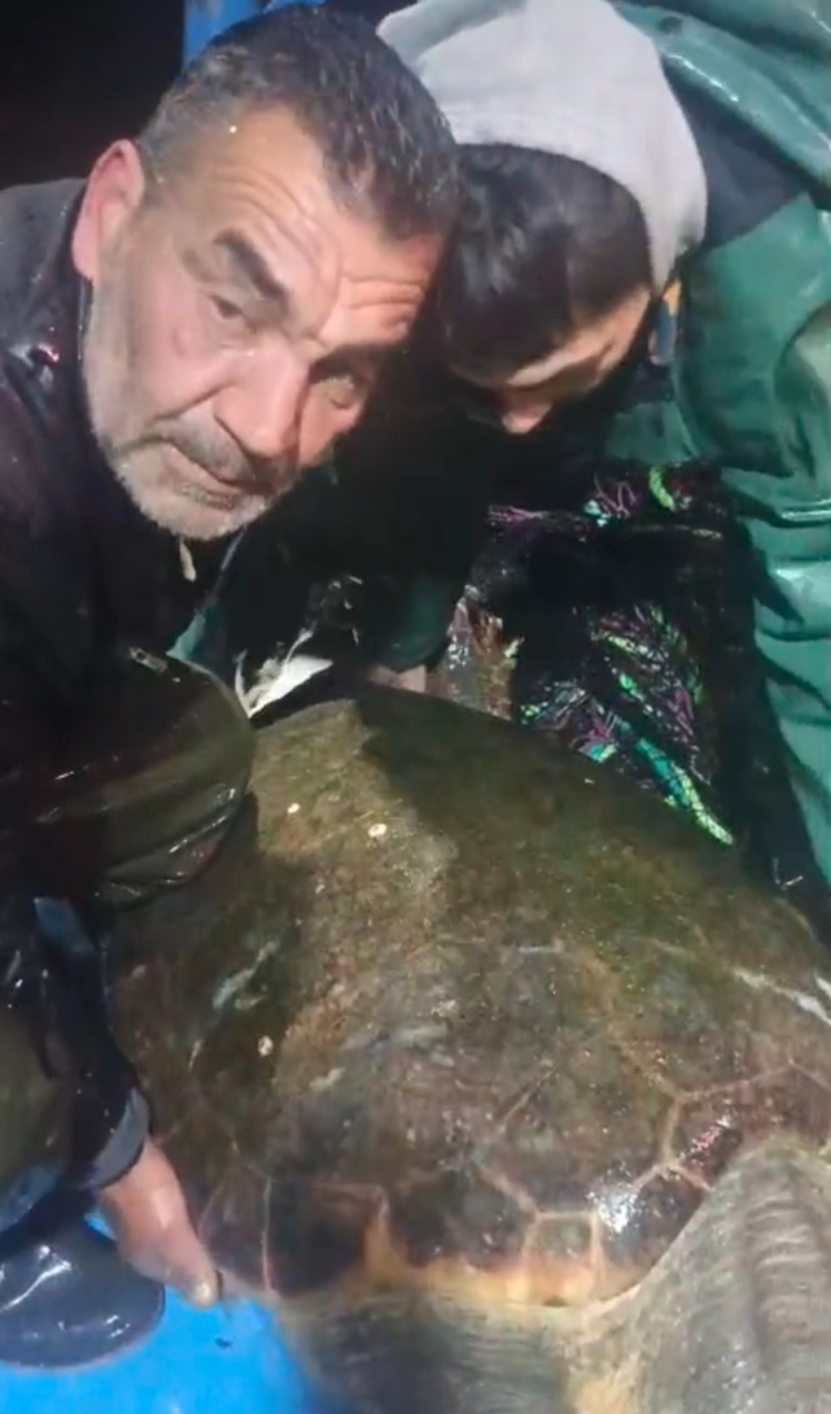 O anları anlatan Çavdar, kaplumbağayı fark ettiklerinde büyük bir hassasiyetle hareket ettiklerini belirterek, “Ağların içinde denk geldi. Biz de zarar vermeden yukarı aldık. Üzerindeki zararlı canlıları temizledik ve tekrar denize bıraktık” dedi.