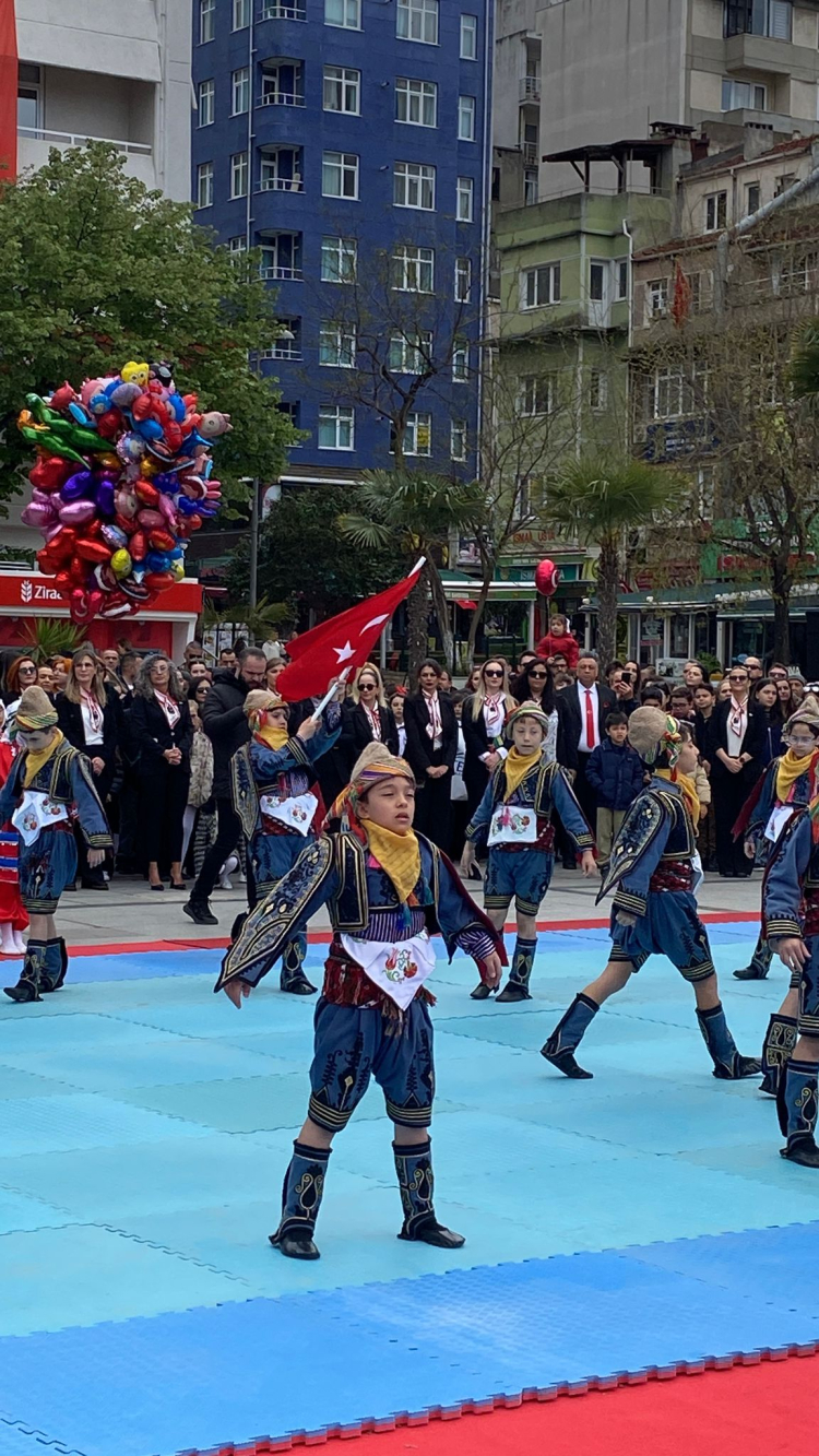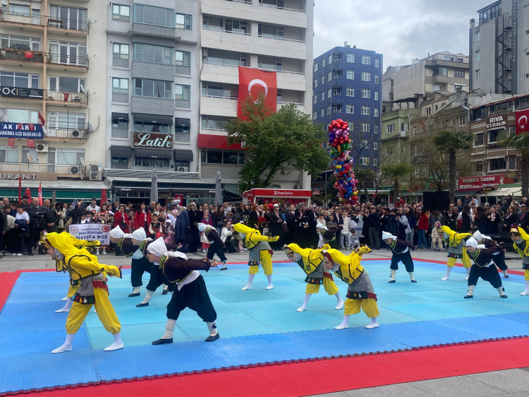 Program, İlçe Milli Eğitim Müdürlüğü tarafından hazırlanan birbirinden renkli gösterilerle devam etti. Öğrencilerin gerçekleştirdiği bayrak gösterisi izleyenlerden büyük alkış aldı. Ardından Balıkesir yöresi halk oyunları, step gösterisi ve 23 Nisan temalı şiirler sahnelendi. Jimnastik gösterisi ile devam eden programda Muğla Silifke yöresi halk oyunları, Trakya yöresi halay gösterisi, Ankara ve Artvin yöresi halk oyunları da sahne aldı.