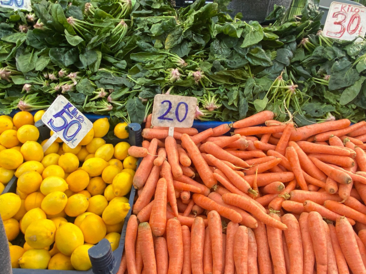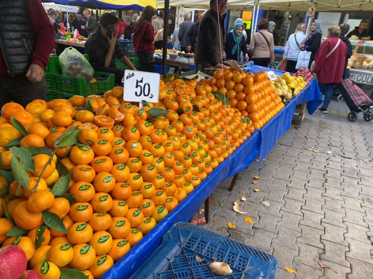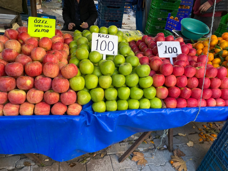 Sarımsak demeti 50 lira, elma 40-100 lira, karnabahar 20-30 lira, havuç 20 lira, soğan 20 lira, patates 20 lira, üzüm 55-65 lira, mandalina 30-50 lira, pırasa 25 lira, ıspanak 30 lira, cennet hurması 70-100 lira, patlıcan 30-40 lira, çeri domates 50 lira, salatalık 40 lira, kabak 25 lira, yeşil biber 40 lira, kapya biber 15-50 lira, acı kırmızı biber 80 lira, lahana 60-70 lira, maydanoz 5-10 lira, portakal 50 lira, brokoli 30 lira, domates 35 lira, dolmalık biber 50 lira, kereviz 60 lira, yeşil acı biber 60 lira, turp 40-50 lira, avokado 35-70 lira, nar 70 lira, reyhan 20 lira, semizotu 20 lira.