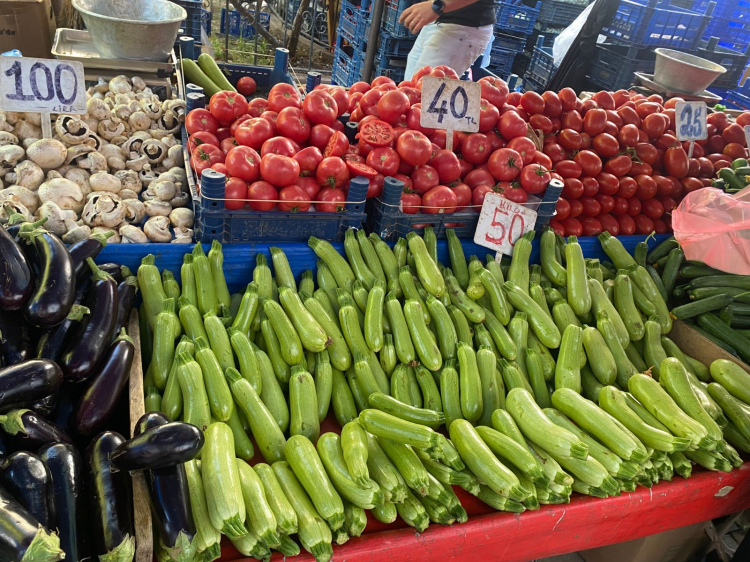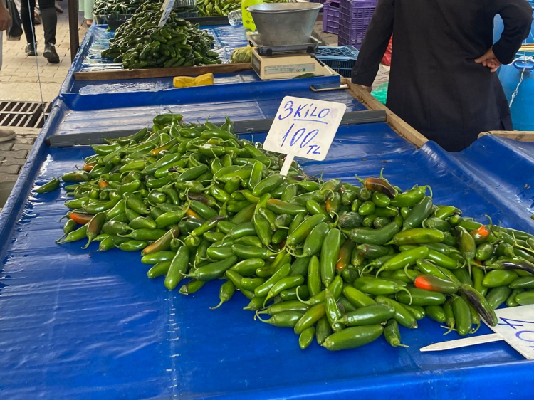 Sebze fiyatlarında ise havuç 30 lira, taze fasulye 40 ile 150 lira, dolmalık biber 50 lira, kapya biber 25 lira, kabak 30 ile 50 lira, domates 15 ile 35 lira, acı yeşil biber 70 lira, yeşil biber 70 lira, patlıcan 35 lira, salatalık 35 lira, soğan 15 lira, patates üç kilo 50 lira, lahana 30 ile 40 lira, limon 60 ile 80 lira, marul 20 ile 60 lira, maydanoz 10 lira, roka 20 lira, dereotu 20 lira, sarımsak demet 100 lira, barbunya 120 lira ve kavun 20 liradan satışa sunuldu.