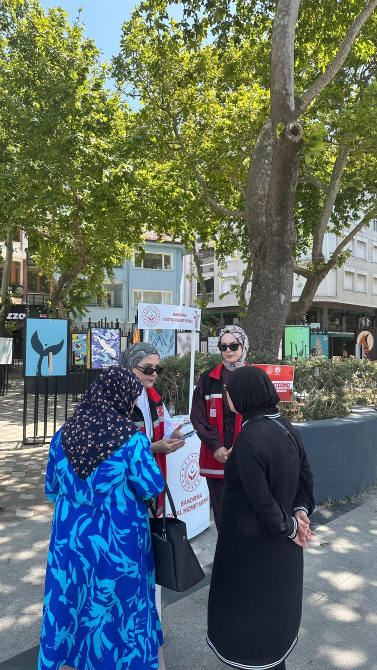 Bandırma Sosyal Hizmet Merkezi Müdürlüğü, Bandırma Cumhuriyet Meydanı’nda stand açtı. Bilgilendirme çalışması kapsamında, 2025 Aile Yılı’nda aile kurumunun güçlendirilmesine yönelik çalışmalar hakkında katılımcılara kapsamlı bilgi verildi.