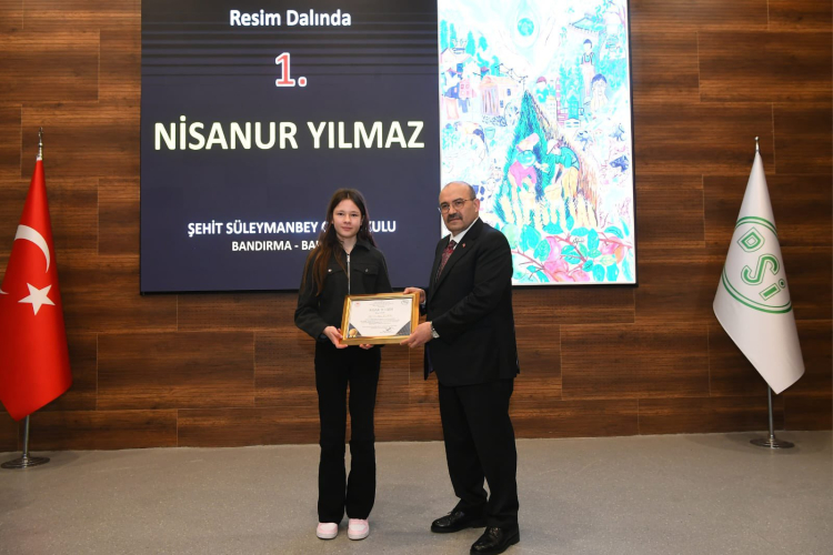 Dünya Su Günü etkinlikleri çerçevesinde gerçekleştirilen “Su ve İnsan” temalı kompozisyon ve resim yarışmasında Bandırma’dan gururlandıran bir başarı geldi. Bandırma Şehit Süleyman Ortaokulu öğrencisi Nisanur Yılmaz, resim dalında birinci olarak önemli bir dereceye imza attı.