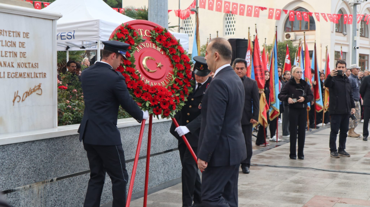 Törene, Ayvalık Kaymakamı Hasan Yaman, Ayvalık Belediye Başkanı Mesut Ergin, sivil toplum örgütleri ve siyasi partilerin temsilcileri ve vatandaşlar katıldı. Törene katılanlar Atatürk anıtına çelenk sundu.