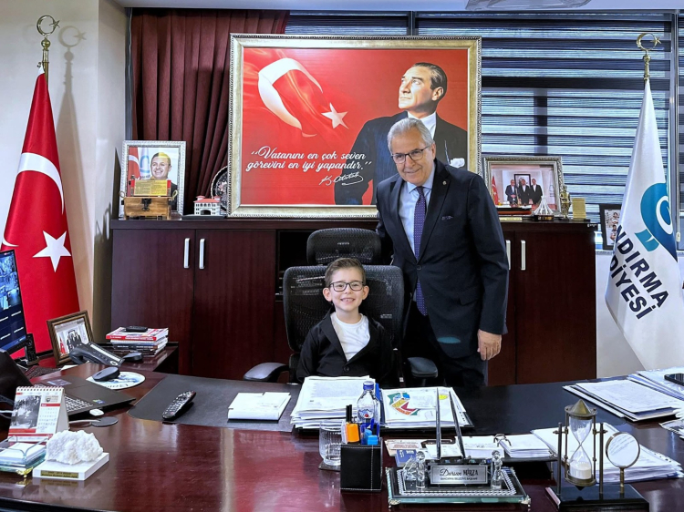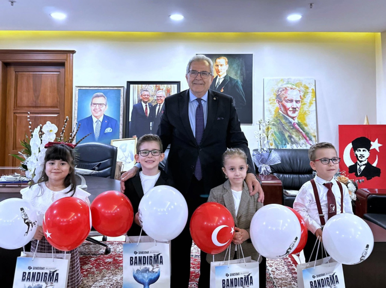 Bandırma Belediye Başkanı Dursun Mirza, makamını öğrenci Aras Bulut Dede’ye devretti. Temsili başkanlık görevini üstlenen Aras Bulut Dede’ye, başkan yardımcıları olarak Miray Toprak, İpar Hatice Kurt ve Mete Alkan eşlik etti.