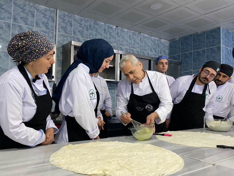 Eğitimde sürdürülebilir mutfak disiplini, gıda israfının önlenmesine yönelik modern uygulama teknikleri ve yerel ürünlerin gastronomiye kazandırılması hakkında kapsamlı bilgiler paylaşıldı. Uygulama aşamasında öğrenciler, bölgenin mevsimsel zenginlikleri ve atık yönetimini temel alan özel bir menü hazırladı. Lor böreği, fesleğenli Girit ezmesi, kuzu göbeği mantarı, çağla salatası, Arap saçlı sübye ve Akkız otu (şevketi bostan) gibi bölge mutfağının seçkin örnekleri mutfakta hazırlandı.