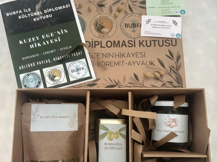 “Kültürü Paylaş, Hikâyeyi Yaşat” mottosuyla hazırlanan projede, Türkiye’nin yerel ürünleri ekonomik değerinin yanı sıra kültürel kimliğin bir temsilcisi olarak ele alındı. Çalışma kapsamında yöresel ürün ihracatının bir kültürel diplomasi aracına dönüştürülmesi hedeflendi. Kuzey Ege’ye özgü ürünlerden oluşan özel tasarım kutular hazırlanarak beş farklı büyükelçilik ve konsolosluğa teslim edildi.