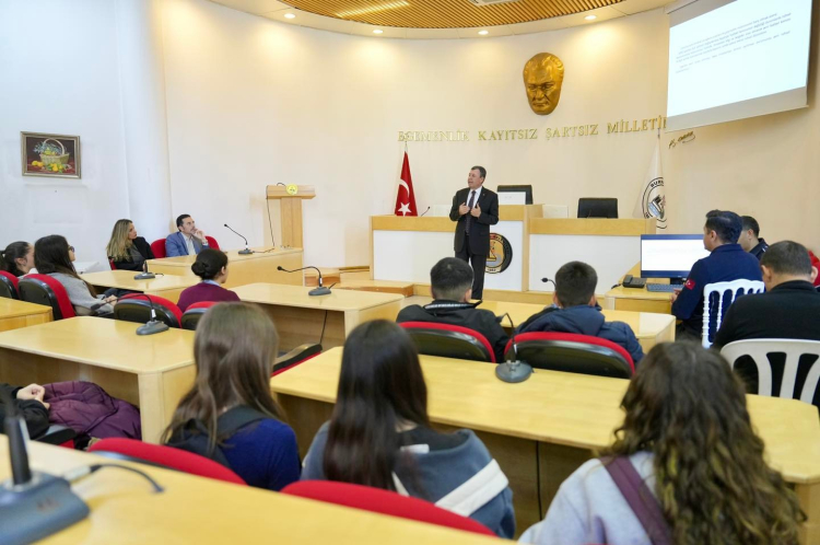 Burhaniye Belediye Meclis Salonu’nda düzenlenen seminere Belediye Başkan Vekili Tarık Erdil ve Meclis Üyesi Murat Dinçer katıldı. Seminerde öğrencilere iş yeri ruhsat süreçleri hakkında bilgiler verildi.