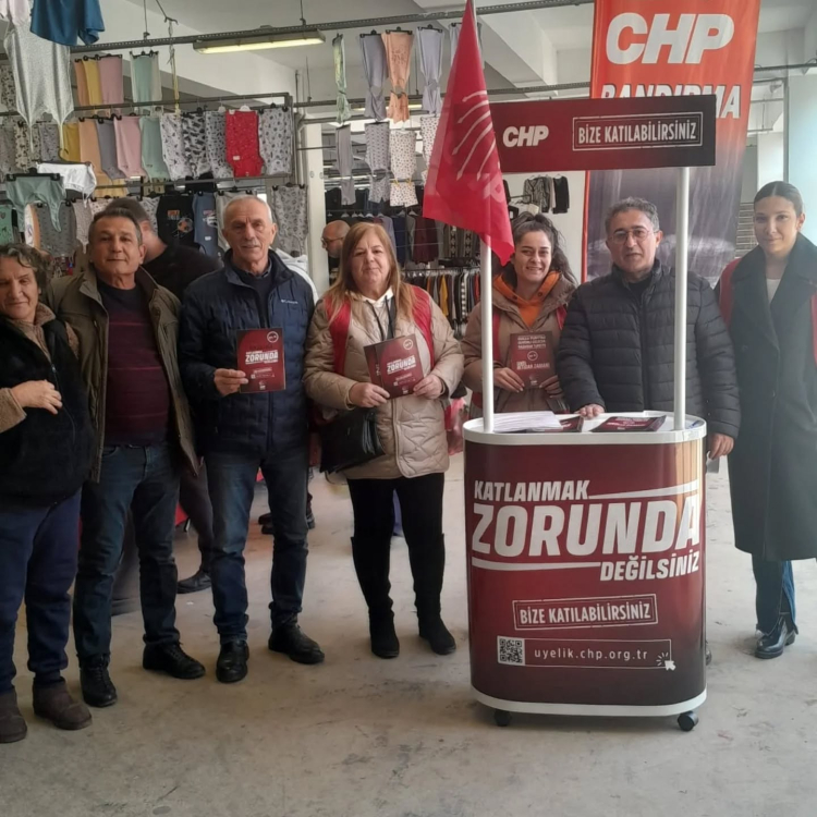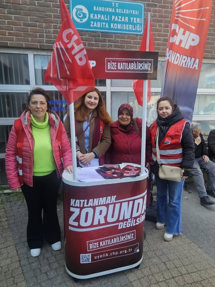 CHP Bandırma İlçe Başkanlığı, Kapalı Pazar Yeri’nde saha çalışması düzenleyerek parti üyeleriyle bir araya geldi. Kurulan stantta İlçe Başkanı Mehmet Atak ve görevli parti üyeleri, ziyaretçilere parti politikalarını anlattı ve üye kazandırma çalışması yürüttü.