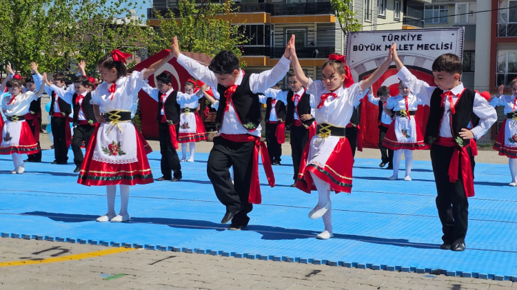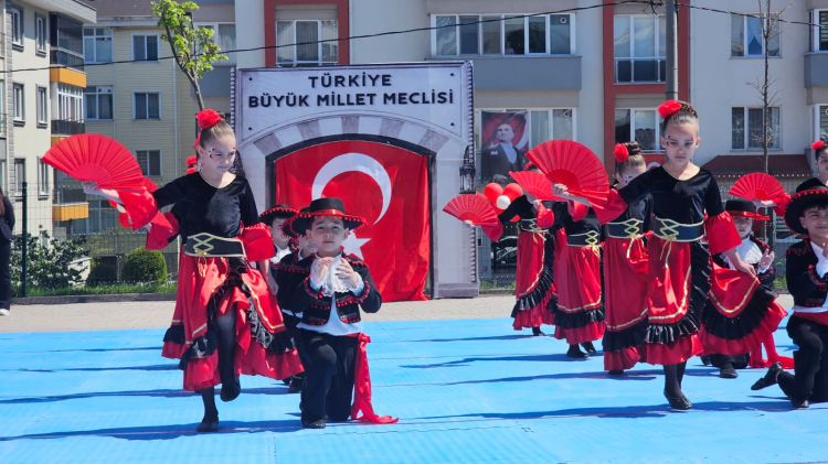 Duygusal anların ardından program, 2/K sınıf öğretmeni Feraye Tilber Açıkgöz’ün sunumuyla devam etti. Öğrencilerin hazırladığı birbirinden renkli gösteriler izleyenlerden büyük alkış aldı. Programda dünya ülkelerinin folklorik danslarından örnekler sunulurken, Türkiye Büyük Millet Meclisi’nin açılışı canlandırıldı ve öğrenciler Mustafa Kemal Atatürk’e çiçek takdim etti.