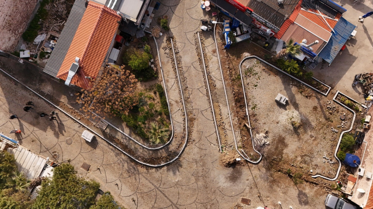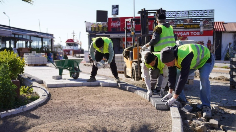 Alibey (Cunda) Adası’nda Eski Yol Giriş Meydanı ile Ali Çetinkaya Meydanı arasındaki güzergâhta çevre düzenleme çalışmaları devam ediyor.
