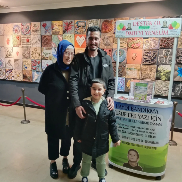 Yazı, “Yusuf Efe’nin hasta olduğunu 5,5 yaşındayken öğrendik. Anaokuluna gidiyordu, öğretmeni ısrarla hastaneye götürmemizi, bir sorun olabileceğini söyledi. İlk götürdüğümüzde bir şey çıkmadı, sağlıklı olduğu söylendi. Ancak öğretmenimiz tekrar ısrar edince bu kez çocuk nörolojiye başvurduk. Orada DMD kas hastalığı olabileceği söylendi. Daha sonra Balıkesir Atatürk Şehir Hastanesi Tıbbi Genetik Bölümü’ne başvurduk. Üç ay sonra sonuçlandı ve maalesef Duchenne Musküler Distrofi (DMD) tanısı konuldu. Bu tanı 5,5 yaşında konuldu, şu an 7 yaşında ve o günden beri mücadele ediyoruz. 15 Ağustos doğumlu ve 8 yaşına girecek. Normalde çocuklar doğum günlerinde sevinir, biz ise onun büyümesine sevinemiyoruz.” dedi.