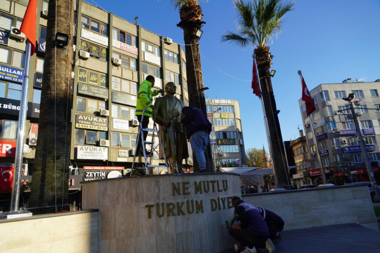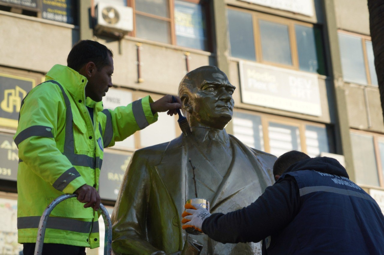 Edremit Belediyesi, Cumhuriyet Meydanı’nda bulunan Atatürk heykelinde bakım ve yenileme çalışmaları gerçekleştirdi. Heykel, belediye ekiplerinin çalışmaları sonucunda temizlenip yeniden boyandı.