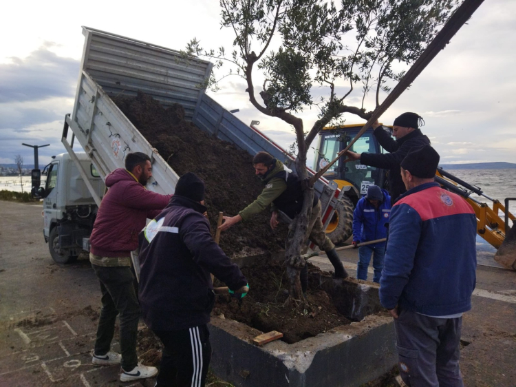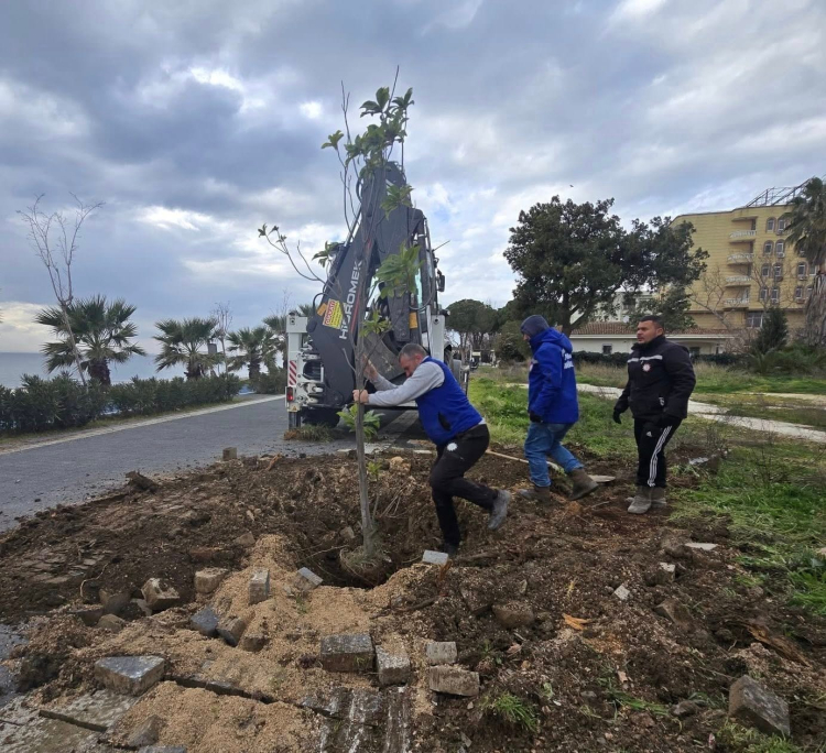Doğaya ve yeşile duyulan sorumluluk anlayışı doğrultusunda, kaldırılan ağaçların yerine yeni fidanlar dikildi. Bu kapsamda sahil bandında oya, manolya ve zeytin fidanları toprakla buluşturularak alan yeniden yeşillendirildi.