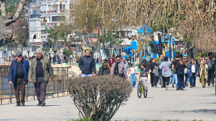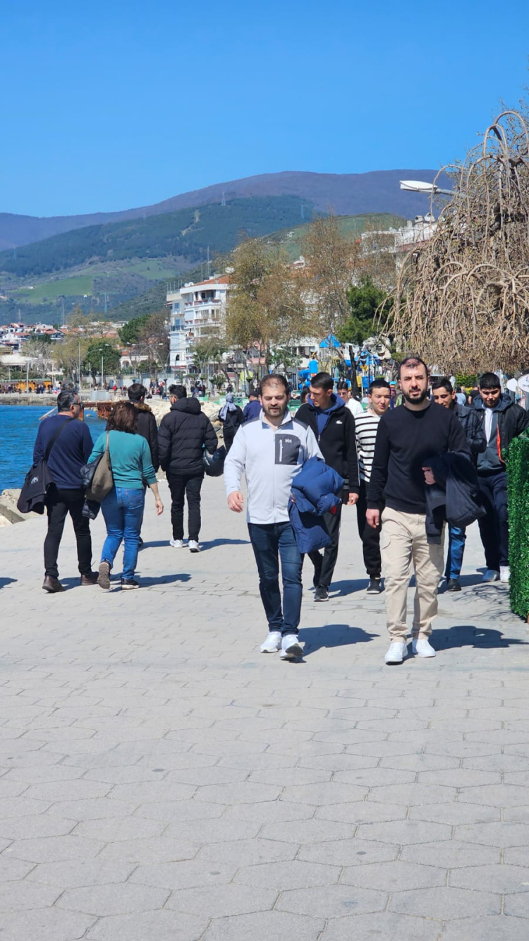 Özellikle Çuğra mevkii ve sahil bandında yoğunluk dikkat çekti. Güzel havayı fırsat bilen vatandaşlar yürüyüş yapıp deniz kenarında vakit geçirirken, bazıları ise kafelerde oturarak güneşin tadını çıkardı. Zaman zaman kalabalığın arttığı bölgelerde “iğne atsan yere düşmez” görüntüler oluştu.
