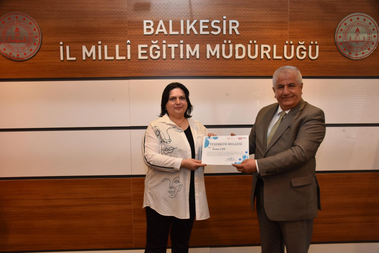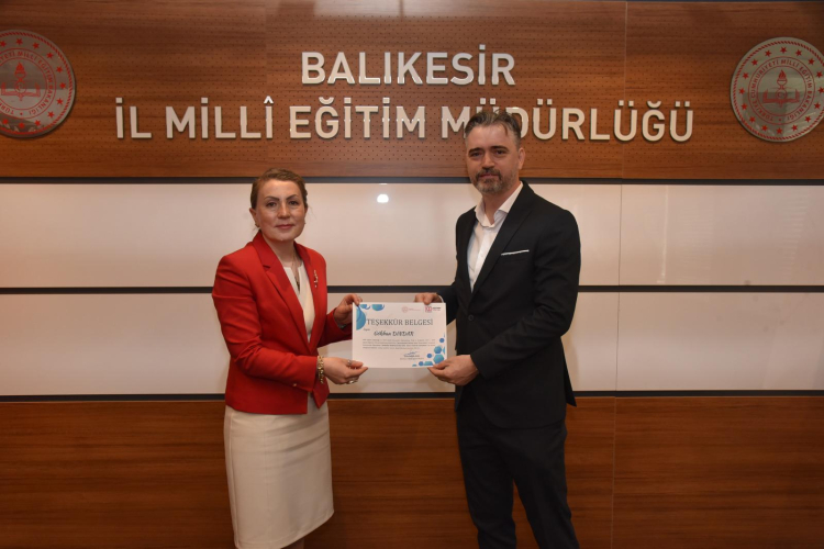 Balıkesir İl Millî Eğitim Müdürlüğü koordinesinde yürütülen yarışma sürecinin ardından dereceye giren öğrencilerimiz ve danışman öğretmenlerimiz için ödül töreni düzenlendi. Törende, İl Millî Eğitim Müdürü Selehattin Kal tarafından derece alan öğrenci ve danışman öğretmenlere ödülleri takdim edilirken, yarışmanın ildeki organizasyon sürecini yürüten İl Millî Eğitim Şube Müdürü Betül Yıldız da programda hazır bulundu.