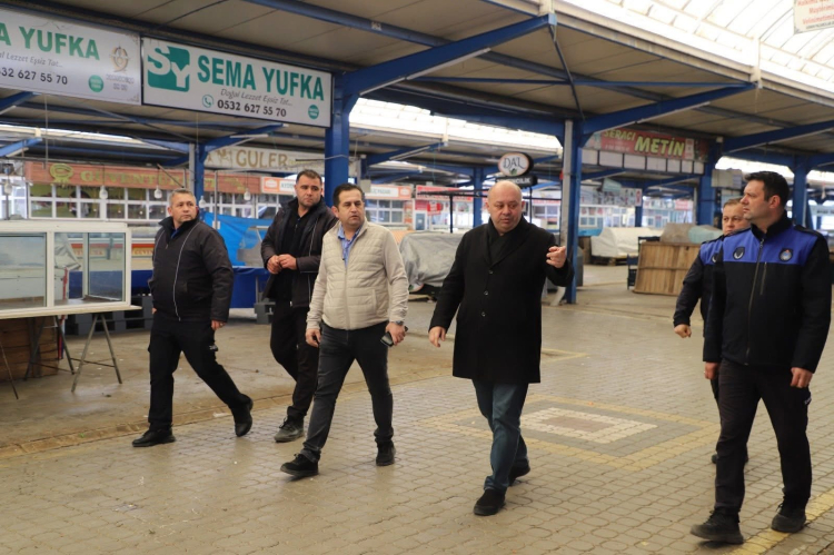 Gönen Belediye Başkanı İbrahim Palaz, Kapalı Pazar Yeri’nde gerçekleştirilecek çevre düzenleme, tadilat ve yenileme çalışmaları öncesinde sahada incelemelerde bulundu.