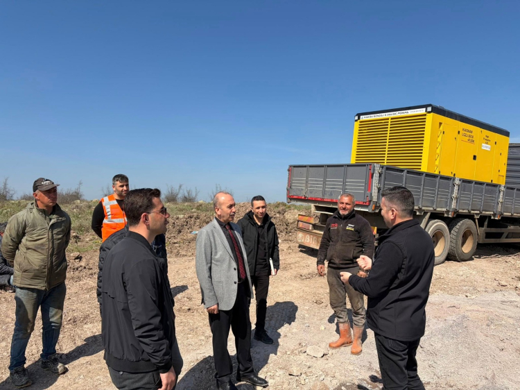 Gönen'de kurulan Sera Organize Tarım Bölgesi’nde altyapı çalışmaları devam ediyor. Bölgede yürütülen yol, taş duvar, kazı–dolgu ve soğuk su altyapı çalışmalarının sürdüğü alanda incelemelerde bulunuldu.