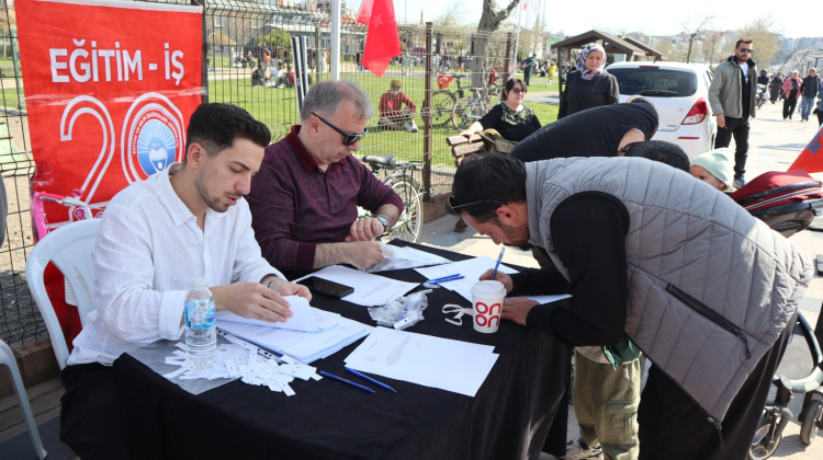 Etkinlikte söz alan Eğitim İş Bandırma Temsilcisi Serdar Polat,