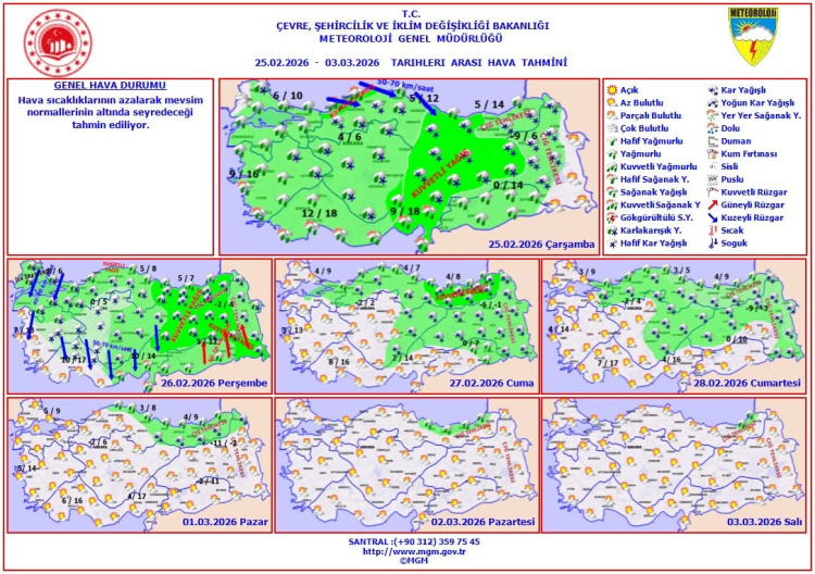 Soğuk hava dalgasının 26 Şubat 2026 saat 00.00’dan başlayarak 5 Mart 2026 saat 09.00’a kadar etkili olması bekleniyor.