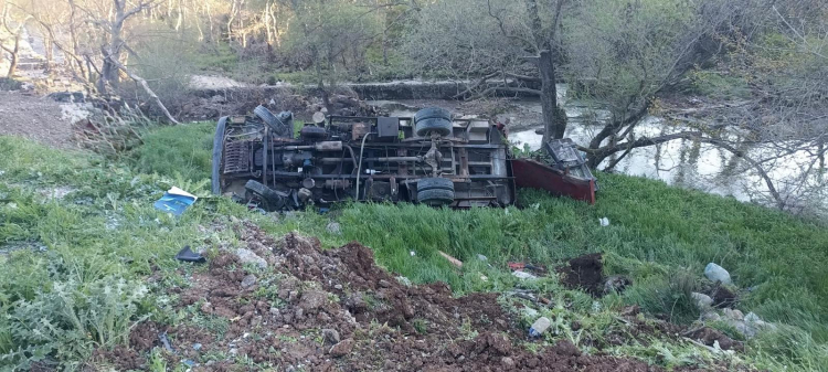 Kaza, Balıkesir istikameti Değirmen Boğazı mevkiinde gerçekleşti. Edinilen bilgilere göre, henüz bilinmeyen bir nedenle kontrolden çıkan iş makinesi dereye doğru uçtu. Tek taraflı meydana gelen kazada sürücü S.N. yaralanırken, yanında bulunan yolcu A.Ö. olay yerinde hayatını kaybetti.