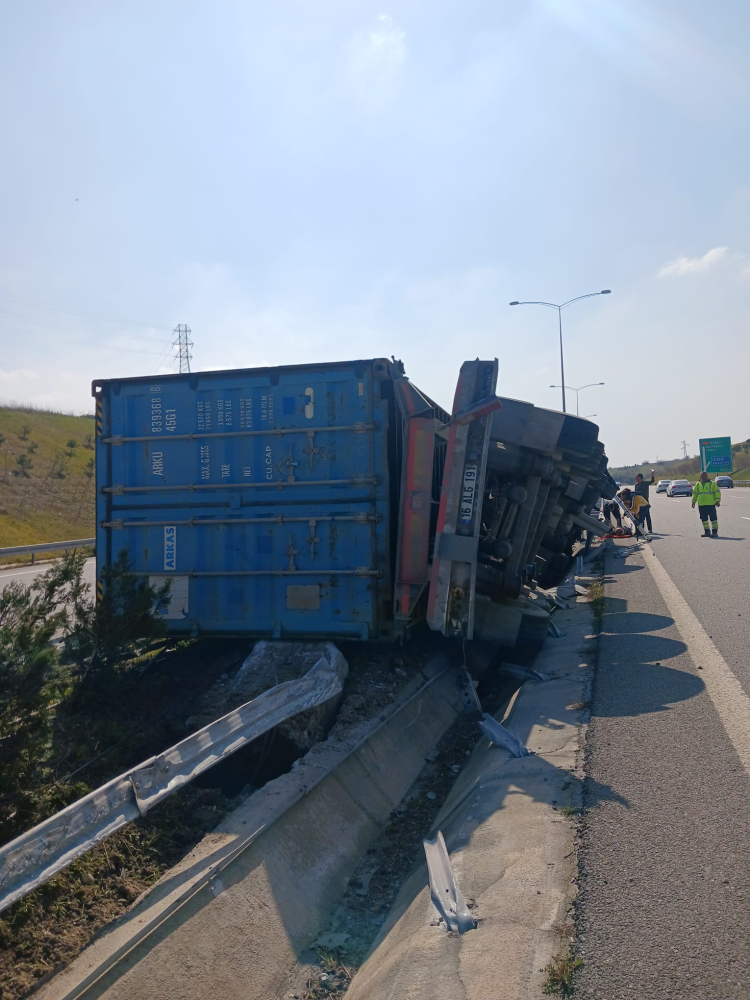 Edinilen bilgiye göre, çekici ve dorseden oluşan 16 BFZ 459 plakalı çekici ile 16 ALG 191 plakalı dorse, henüz belirlenemeyen bir nedenle kazaya karıştı. Kazanın ardından sürücü araç içerisinde mahsur kaldı.