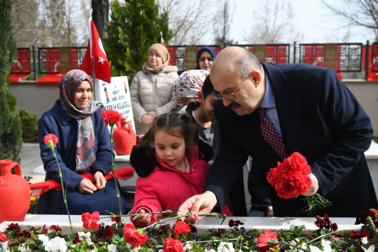 Başta Gazi Mustafa Kemal Atatürk olmak üzere, Çanakkale’de ve vatanımızın her köşesinde şehadete yürüyen tüm kahramanlarımızı rahmet ve minnetle yâd ediyorum. Ruhlarınız şad olsun.” ifadelerine yer verdi. Şehitlerin kabirlerine karanfil bırakan Vali Ustaoğlu şehit ailelerine bu anlamlı günde tekrar sabırlar diledi.