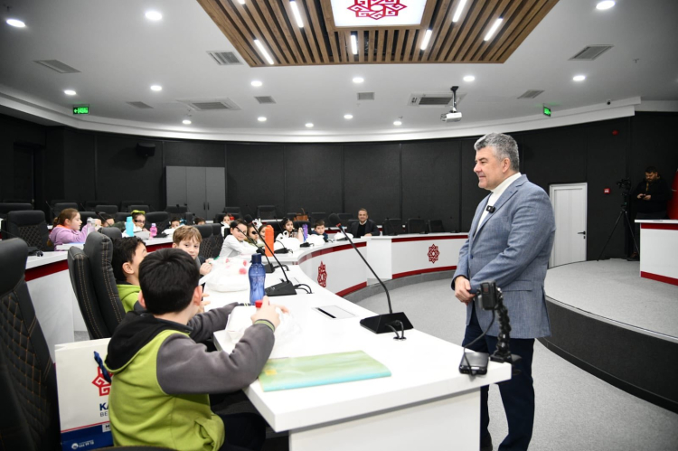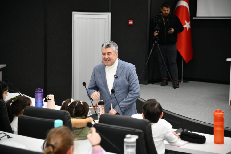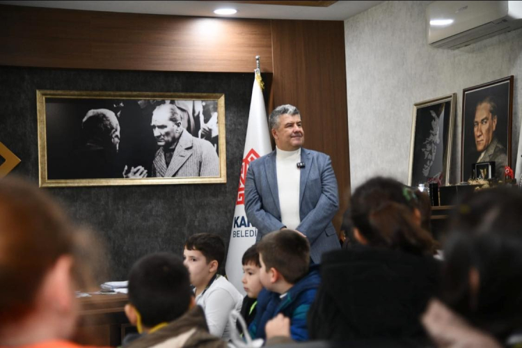 Karesi Belediye Başkanı Mesut Akbıyık, 23 Nisan Şehit Deniz Göçkün İlkokulu 2/B sınıfı öğrencilerini ağırladı. Öğrenciler, “Yerel Yönetimler” temalı derslerini belediye ortamında uygulamalı olarak yaparken, Başkan Akbıyık çocukların sorularını yanıtladı.