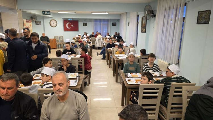 Bandırma Kaymakamlığı öncülüğünde gerçekleştirilen programda Kaymakam Engin Aksakal, hayırseverlerle birlikte Tekke Camii Kur’an Kursu öğrencileriyle aynı sofrada bir araya geldi.