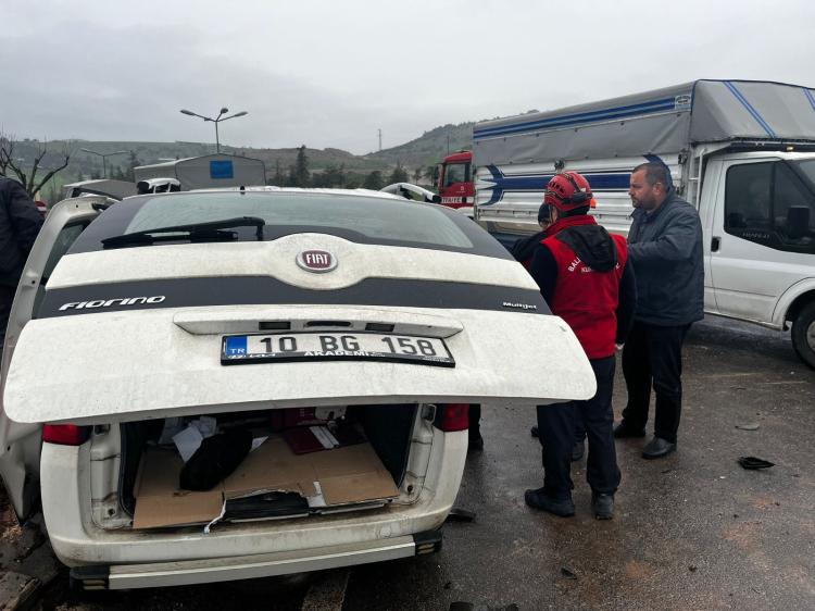 Edinilen bilgilere göre, gelen ihbar üzerine Karesi Grup Amirliği ekipleri 1 araç ve 5 personelle kısa sürede olay yerine sevk edildi. Yapılan incelemede, 10 BG 159 plakalı araç ile 10 R 7677 plakalı binek otomobil kazaya karıştığı belirlendi.