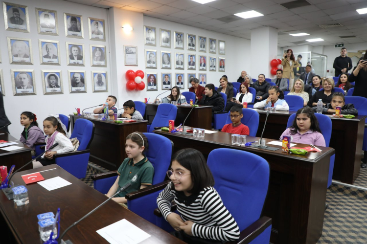 Edremit Belediyesi’nin her yıl geleneksel olarak düzenlediği Çocuk Meclisi toplantısı, ilçedeki farklı okullardan gelen 35 öğrencinin katılımıyla gerçekleştirildi. Toplantı öncesinde Başkan Mehmet Ertaş, belediye başkanlığı koltuğunu Girne Koleji 4. sınıf öğrencisi Masal Su Yakar’a bıraktı. Çocuk başkan Masal Su Yakar, ilk talimatını vererek 23 Nisan etkinliklerinin eksiksiz şekilde gerçekleştirilmesini istedi.