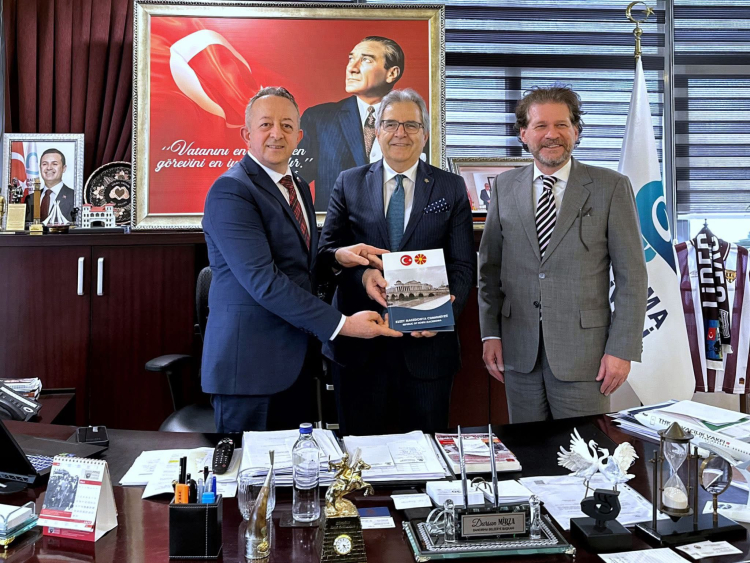 Bandırma Belediye Başkanı Dursun Mirza, kentte gerçekleşen diplomatik buluşmaya ev sahipliği yaptı. Ticaret ve sanayi odalarıyla yapılacak toplantı için Bandırma’ya gelen Kuzey Makedonya Cumhuriyeti Büyükelçisi Dr. Jovan Manasijevski ve Bursa Konsolosu Halil Bedzeti, Başkan Mirza’yı makamında ziyaret etti.