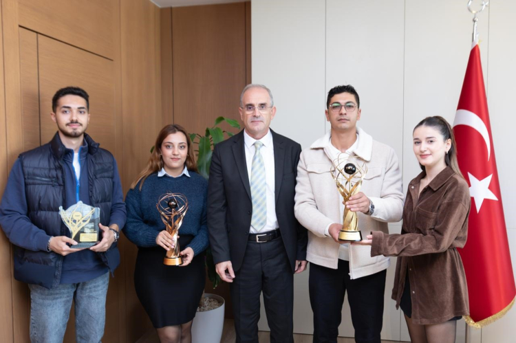 Öğrenciler, yarışmaya hazırlık süreçlerini ve ödül kazanmalarının kendilerinde yarattığı heyecanı paylaşırken, Rektör Prof. Dr. İsmail Boz, öğrencileri ve danışman akademisyenleri tebrik etti.