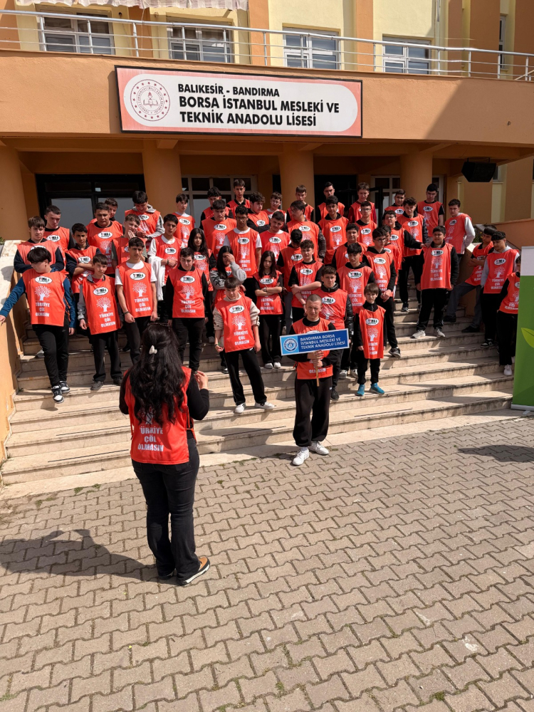 TEMA Vakfı Bandırma İlçe Sorumluluğu tarafından, Bandırma Borsa İstanbul Mesleki ve Teknik Anadolu Lisesi’nde fidan dikim etkinliği gerçekleştirildi. Okul Müdürü Gülsevim Kaçar’ın ev sahipliğinde düzenlenen programda, çok sayıda meyve fidanı okul bahçesine dikildi.
