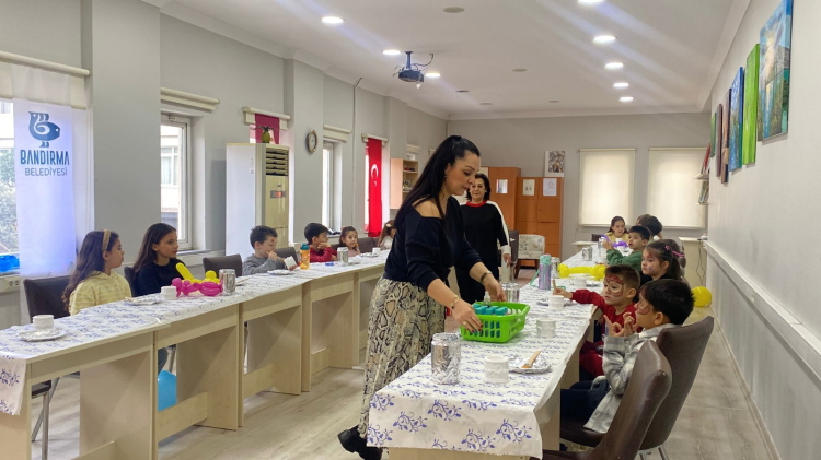 Bandırma Belediyesi, kültür ve sanat etkinlikleri kapsamında yarıyıl tatilinde olan çocuklara yönelik “Çocuk Atölyeleri” etkinliği düzenledi. Barış Manço Kültür Merkezi’nde gerçekleştirilen etkinlikte çocuklar, sanat ve üretim odaklı çalışmalarla keyifli vakit geçirdi. Program öncesinde çocuklara yüz boyama etkinliği gerçekleştirildi.