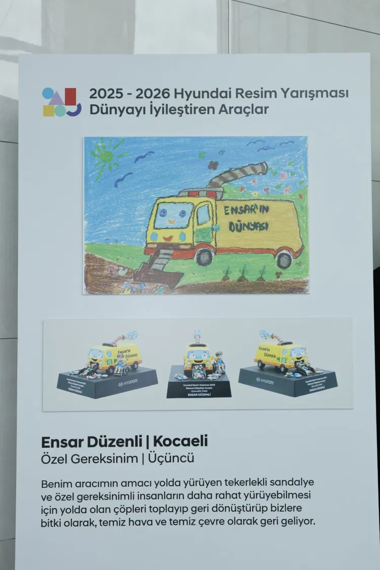 Hyundai tarafından düzenlenen “Dünyayı İyileştiren Araçlar” temalı resim yarışmasında Türkiye üçüncüsü olan Ensar Düzenli, 7-10 yaş özel gereksinimli çocuklar kategorisinde derece elde etti. Yarışma, Türkiye genelinde yoğun katılımla gerçekleştirildi. Ensar’ın çizdiği projede, tekerlekli sandalye kullanan bireylerin yaşamını kolaylaştıran ve çevre temizliğine katkı sağlayan bir araç yer aldı.