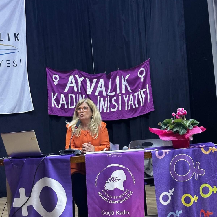 Ayvalık’ta, 25 Kasım Kadına Yönelik Şiddetle Mücadele Günü kapsamında etkinlik düzenlendi. Ayvalık Belediyesi Kadın Danışma Evi ile Ayvalık Kadın İnisiyatifi’nin iş birliğinde gerçekleştirilen programda, Urla Kadın Dayanışma Derneği Başkanı ve Eşik gönüllüsü Av. Saadet Kayaalp, 6284 Sayılı Kanun çerçevesinde kadına yönelik şiddete karşı koruyucu ve önleyici uygulamaları anlattı.