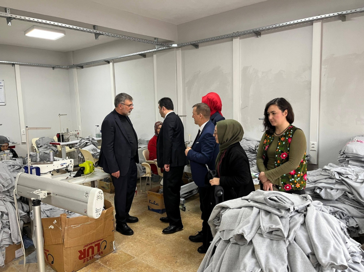 Kepsut İlçe Kaymakamı Adem Taşpınar ve Kepsut Belediye Başkanı İsmail Cankul, Kepsut Vefalı Eller Kadın Girişimi Üretim ve İşletme Kooperatifinin kafe ve dikiş atölyesinde incelemelerde bulundu.