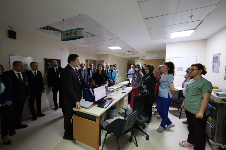 Ziyarette MHRS işleyişi, acil servis ve poliklinik hizmetleri, yoğun bakım süreçleri, görüntüleme ve tıbbi hizmetler ile hastanenin mali verileri, yapılan sunum eşliğinde ele alındı. Haber Merkezi