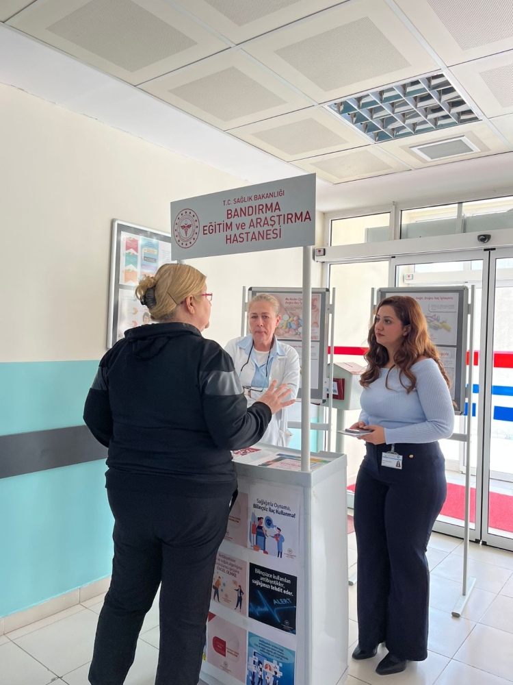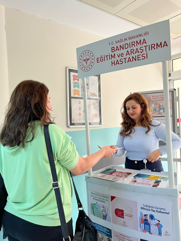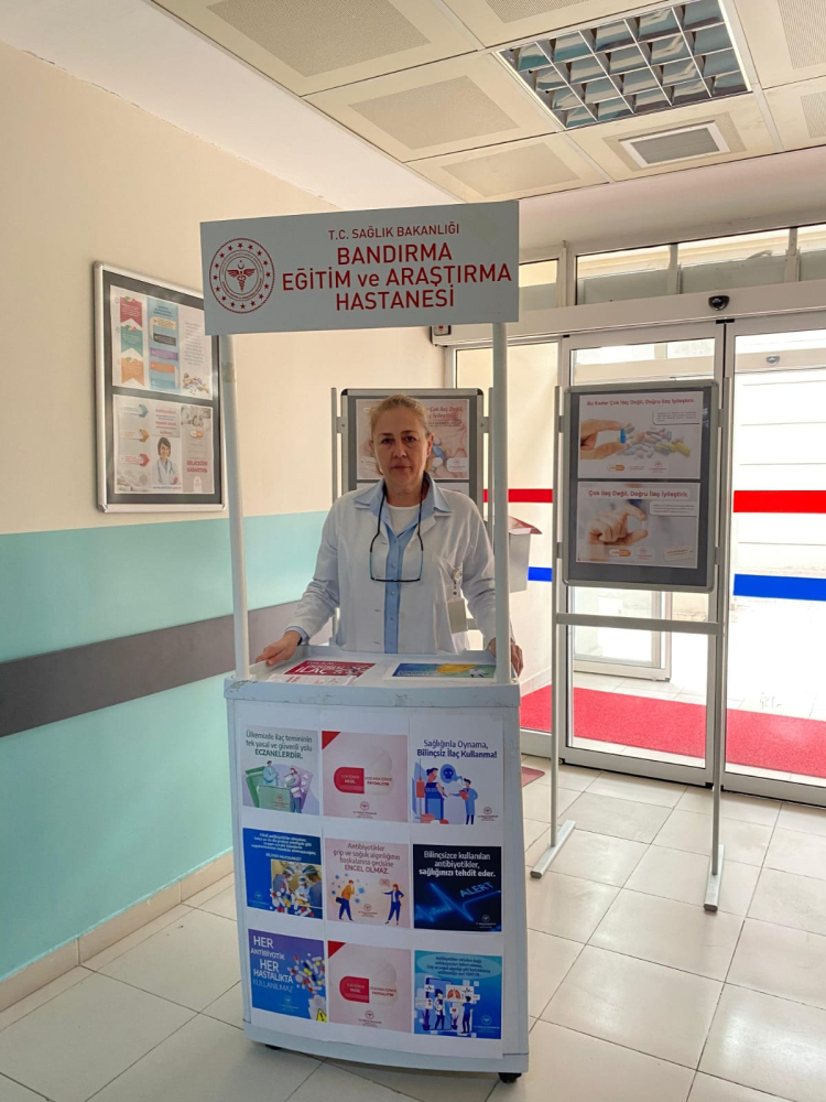 Bandırma Eğitim ve Araştırma Hastanesi, Dünya Antimikrobiyal Direnç Farkındalık Haftası kapsamında çeşitli etkinlikler gerçekleştirdi. Bu yılın teması olan “Şimdi Harekete Geçin: Bugünümüzü koruyun, geleceğimizi güvence altına alın.” mesajı doğrultusunda, hastanenin Eczane Birimi tarafından bir bilgilendirme standı açıldı.