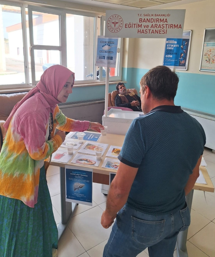 Bandırma Eğitim ve Araştırma Hastanesi, 19-25 Eylül Dünya Şeker Tüketimine Dikkat Haftası kapsamında farkındalık çalışmaları gerçekleştirdi. Aşırı şeker tüketiminin sağlığa olumsuz etkilerini vurgulamak ve bu tüketimi azaltmak amacıyla çeşitli etkinlikler düzenlendi.