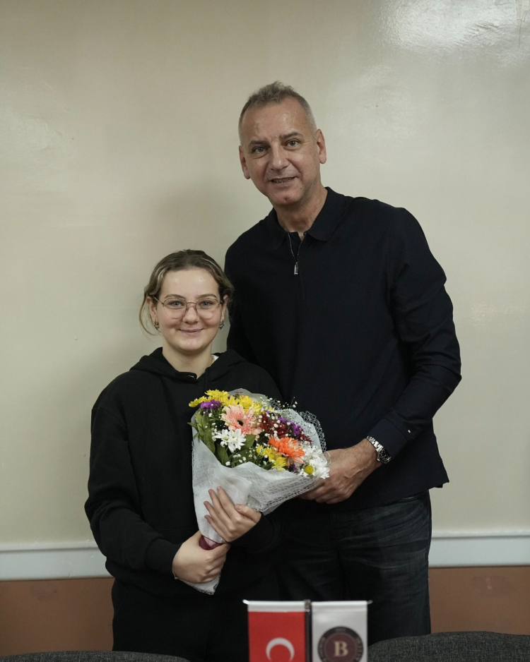 Parmos Otel Bandırma Bordo Basketbol Genel Menajeri Haluk Yıldırım, Takım Kaptanı Orhan Hacıyeva ve basketbolcu Erolcan Çinko, Akşemsettin Mesleki ve Teknik Anadolu Lisesi’nde öğrencilerle buluştu.