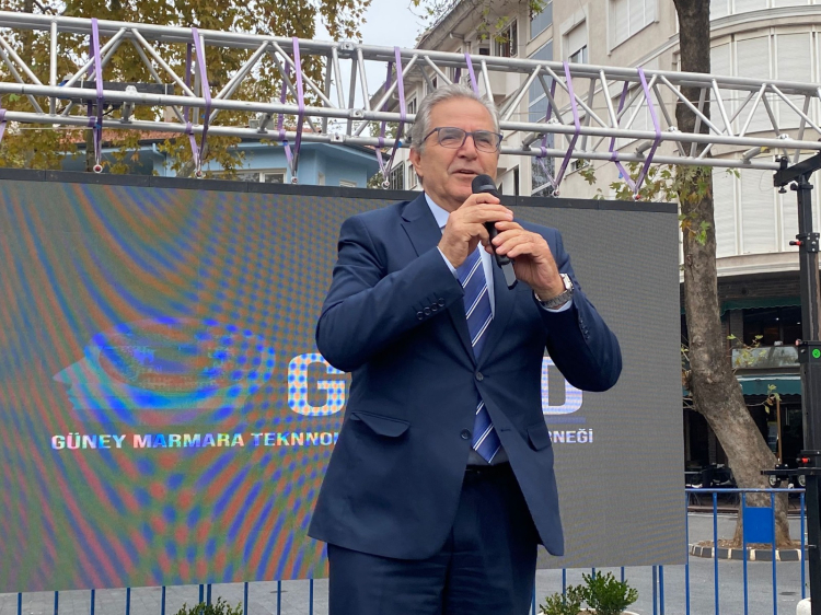 Festivalin düzenleyicisi Güney Marmara Teknoloji ve İnovasyon Derneği Başkanı Cem Aslan, teknolojinin doğru ellerde şekillenmesi gerektiğine dikkat çekti. Aslan, “Benim dünyada gezdiğim, gördüğüm en güzel ülkenin en güzel insanlarıyla nefes aldığım topraklardayız. Artık sözün bittiği yerdeyiz. Çünkü çok konuşup az şey yaptığımızı fark ettik. Yaklaşık bir buçuk yıl önce herkesin birbirini motive ettiği ama aslında demotive ettiği bir dönemin içinden geçtik. Teknoloji çok hızlı ilerliyor ancak insanlık bu hızın kurbanı haline geliyor. Silahı bulan insan onu bomba yapmak için bulmadı. Teknoloji doğru ellerde gelişmezse, yönünü bilmeyen bir gemi gibi nereye gideceğimizi bilemeyiz. Önce inanmak gerekiyor. Çünkü biz büyük bir mirasın çocuklarıyız. Bu mirasın temelinde şu anlayış vardı: ‘Silah yok, bulunur. İmkân yok, yaratılır. Biz yeter ki inanalım.’” dedi.